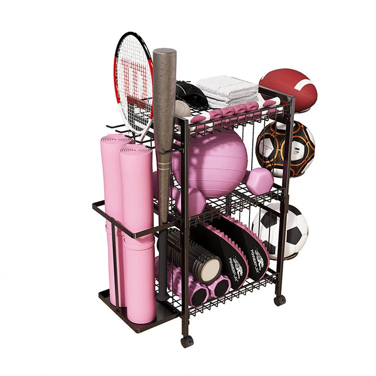 Hoc solum stans metallum yoga mat reposita eculeum habet tres ordines et duo systemata repono. Laevum latus independenter designatum est, spatium dilatans, quod 2-3 tegetes iusto-amplificas yoga erectas tenere potest. Recta reposita etiam longi generis apparatum accommodare possunt ut tennis reticulo, baseball vespertiliones, hockey ligna, etc.